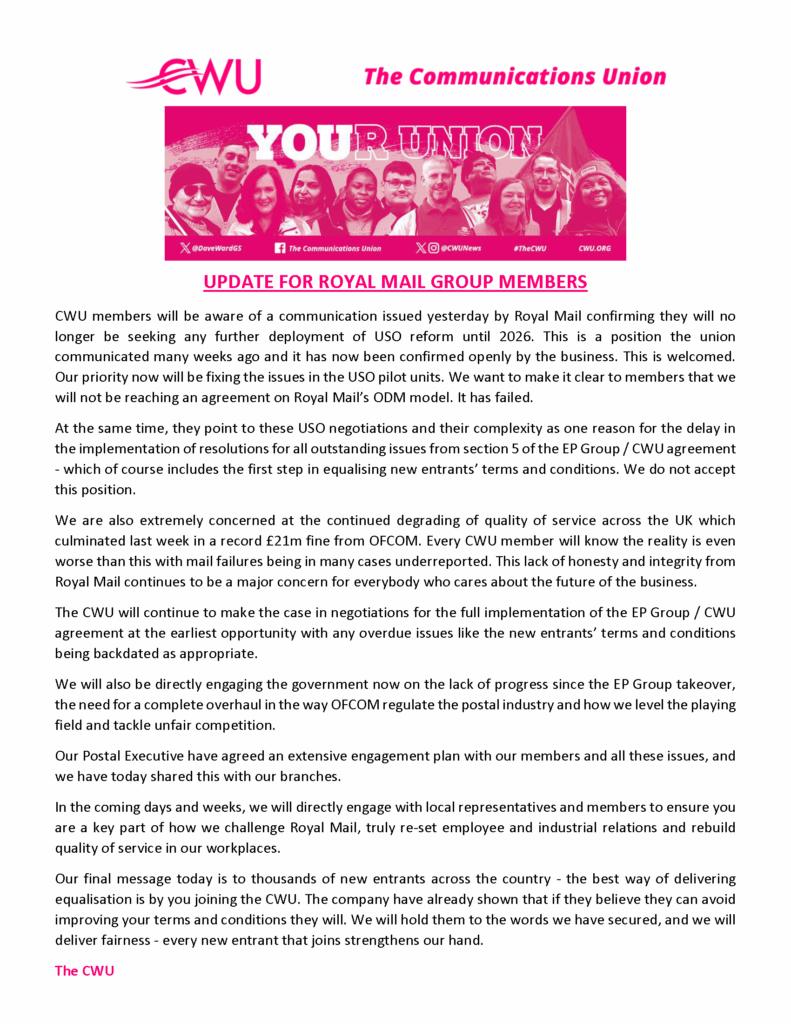 We are one of the largest branches of the Communication Workers Union (CWU) with nearly 5,000 members.